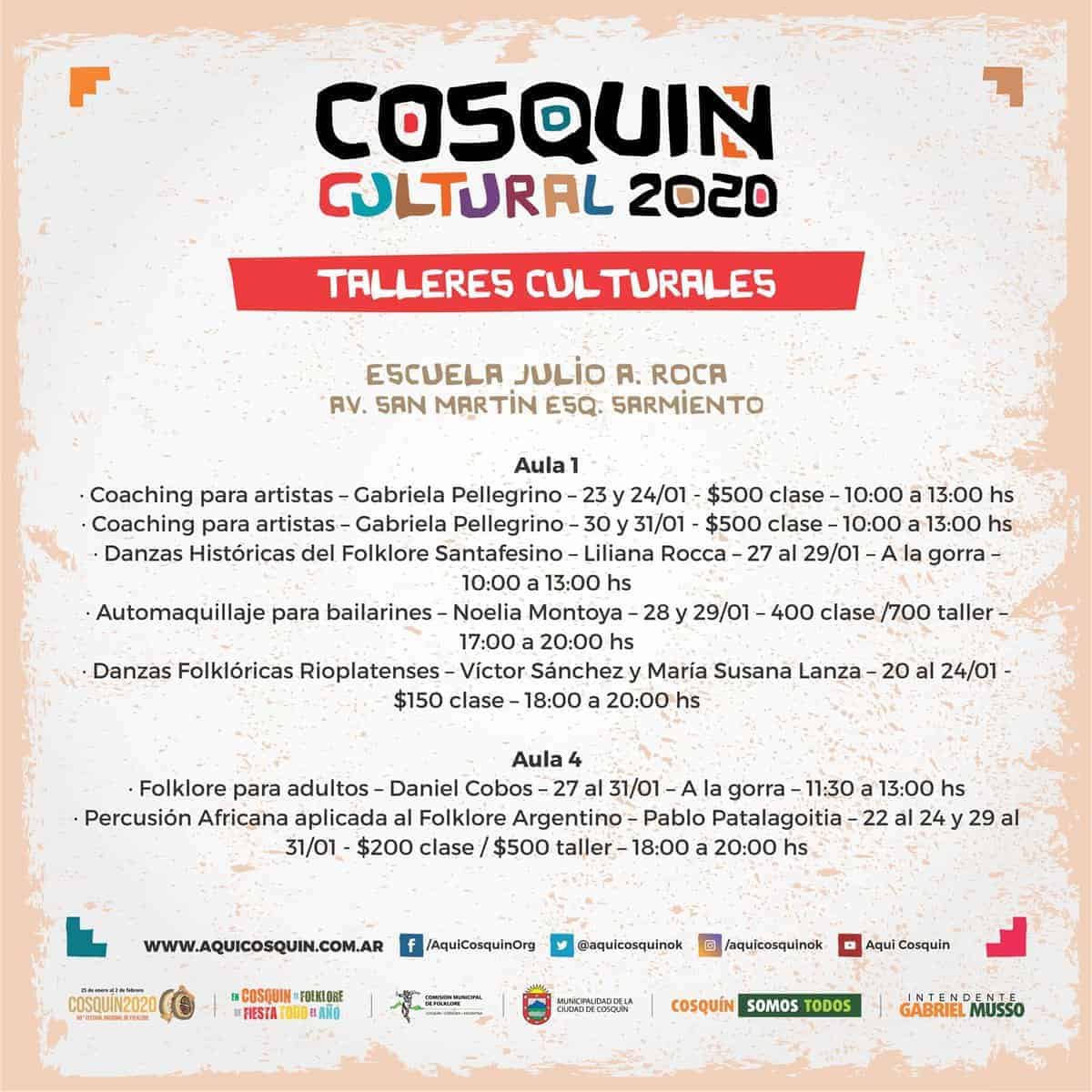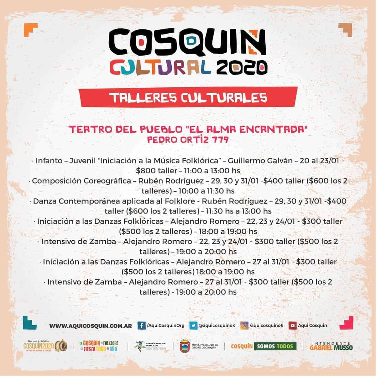 Lezioni con grandi maestri di danza, si ha l’occasione di averli tutti insieme e riuniti, si trovano dunque tutti i diversi tipi di danze folkloriche, dalla santiagueña, a quelle della zona di Jujuy, bailecito, takirari, cueca, carnavalito, saya, danze del litorale come chamamé e chamarrita, malambo e zapateo, zamba nei diversi stili, addirittura tango!