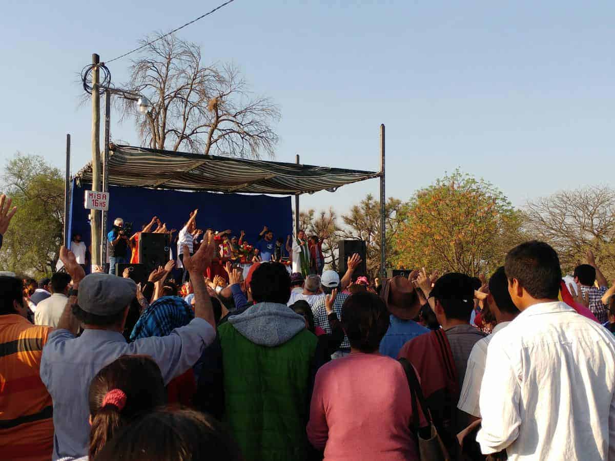 In effetti non erano cose da perdere, una messa nel bel mezzo di un campo, un altare costruito sotto una lamiera, canti biblici sostituiti dal famoso “escondido” e l’organo sostituito dai bombos..