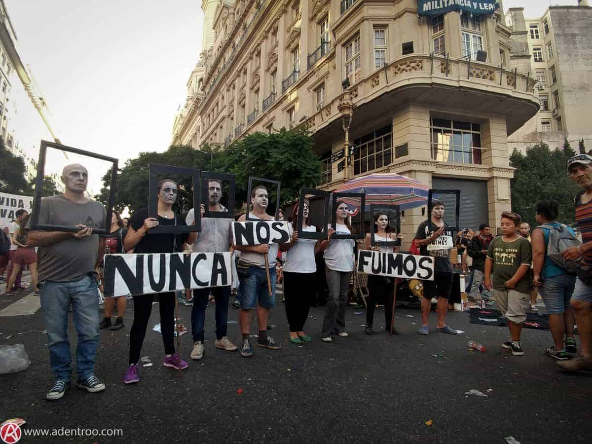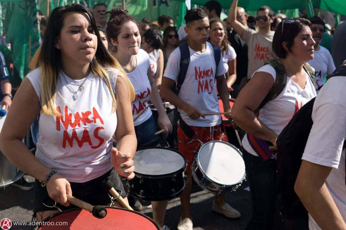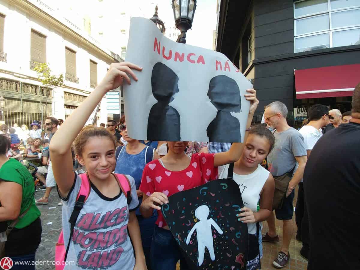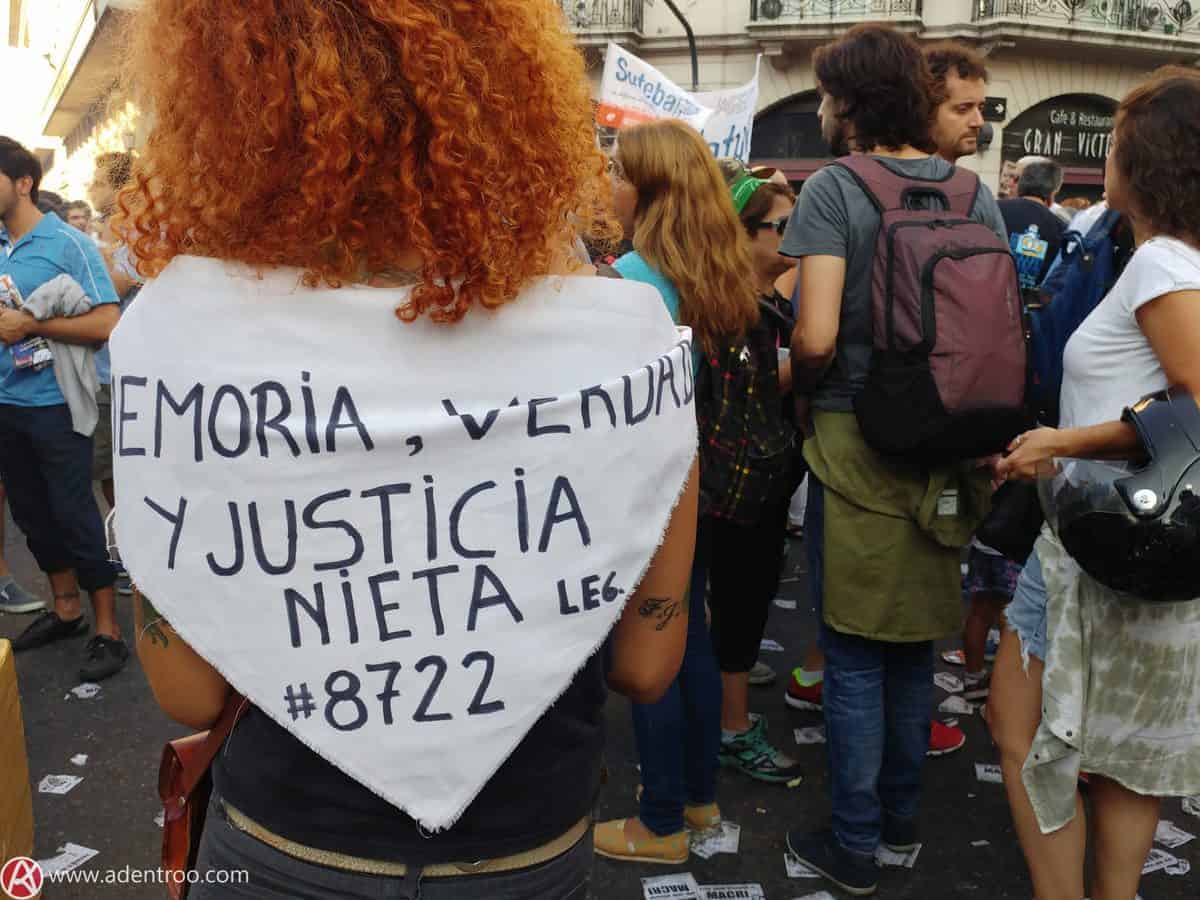 L’orgoglio e l’animo guerrigliero di questo popolo oggi si respirava a pieni polmoni, mescolato al profumo dei choripan; bambini in fasce, nonni col bastone, mamme all’ottavo mese di gravidanza, adolescenti colorate, tutti, davvero tutti, uniti a marciare, gridare, suonare, ballare, per non dimenticare, per non dimenticare oltre 30.000 desaparecidos, per non dimenticare il clima di terrore mascherato da apparente calma che in quegli anni aveva portato la dittatura.