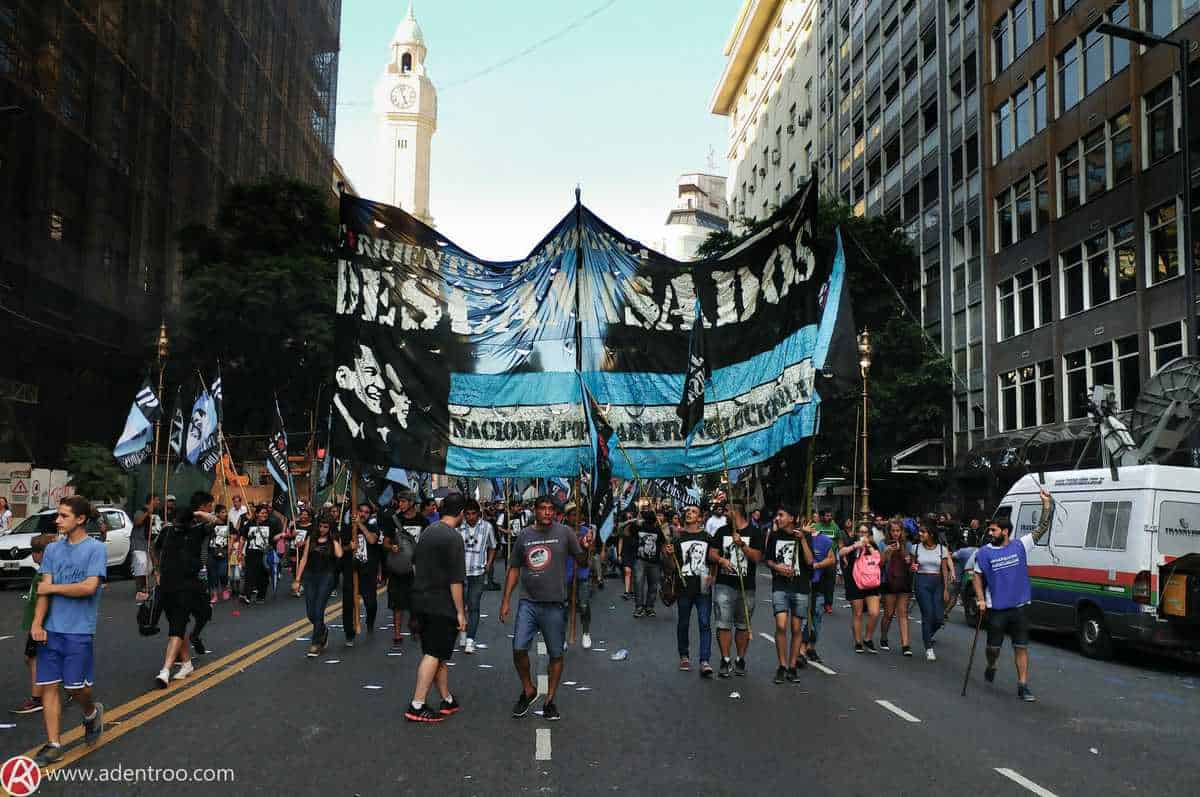 Dopo aver gironzolato per oltre due ore tra i vari fronti più o meno rivoluzionari, mi trovo giusto sotto al Cabildo quando allungo lo sguardo in avenida de Mayo e i miei occhi improvvisamente si illuminano all’avanzare di uno striscione, sta arrivando il fronte “Chacarera y Liberacion”!!